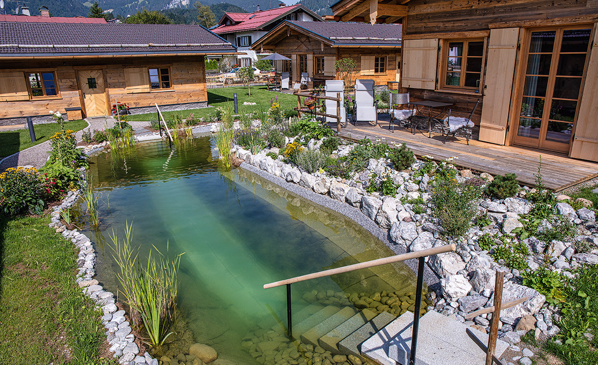 Viele unserer Chalets verfügen über private Saunen, Whirlpools oder freistehende Badewannen, die für eine entspannende Auszeit sorgen. Einige Chalets bieten auch Zugang zu einem eigenen Garten mit angrenzendem Bio-Badeteich mit einer Terrasse, wo Sie die frische Bergluft genießen können.